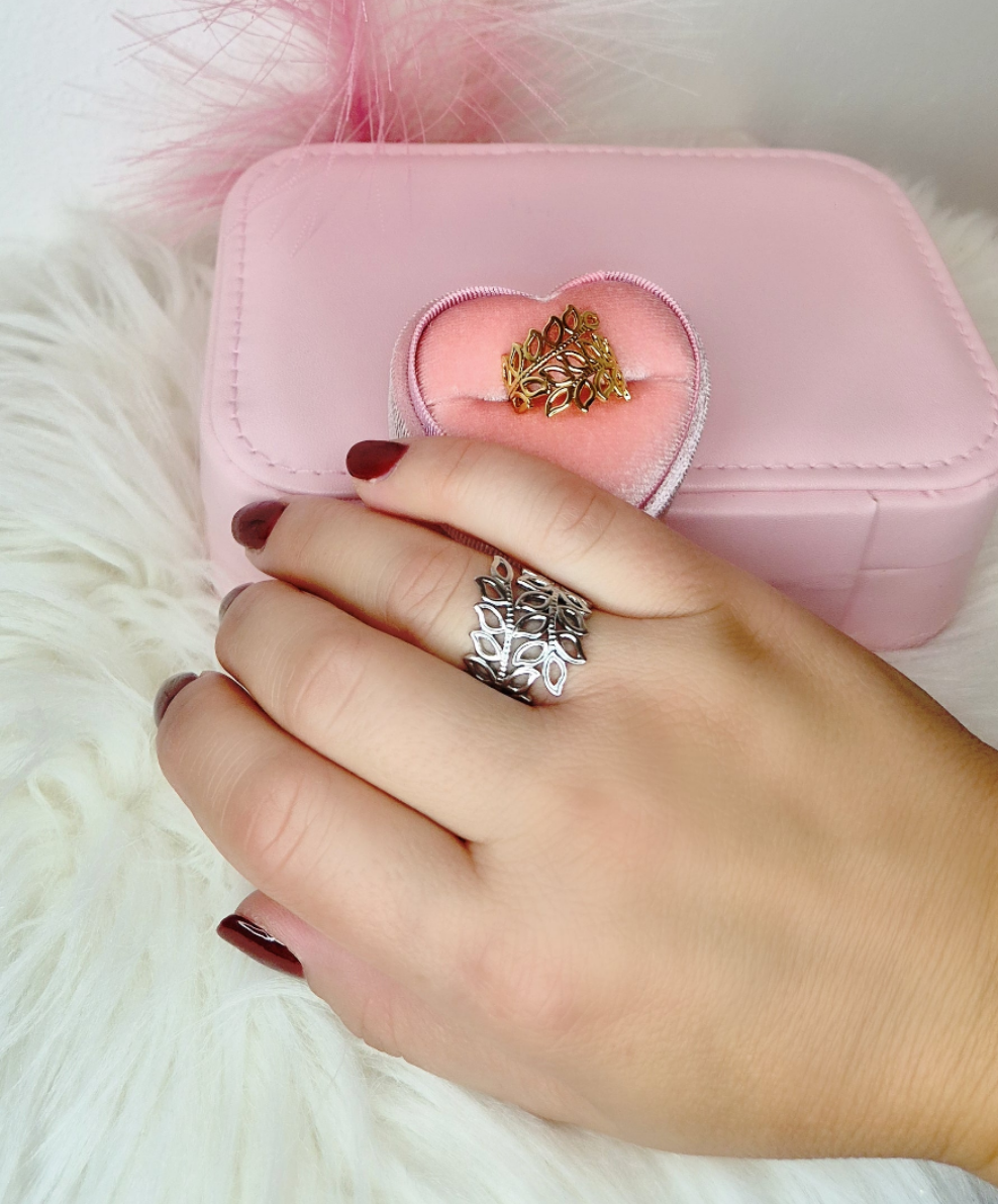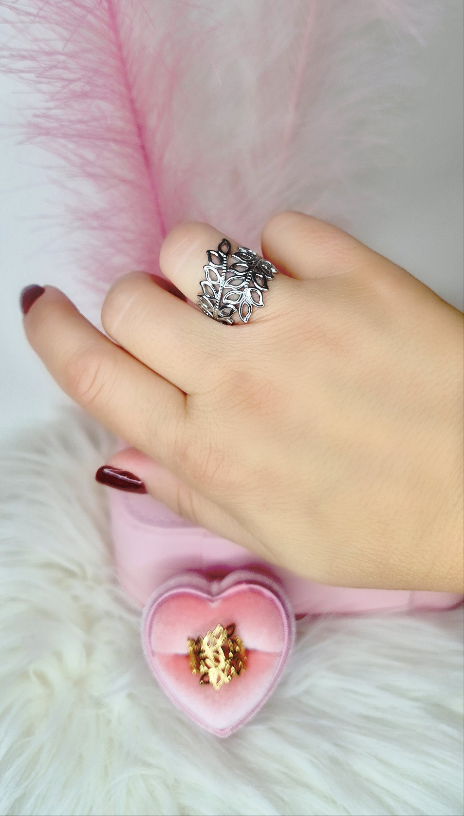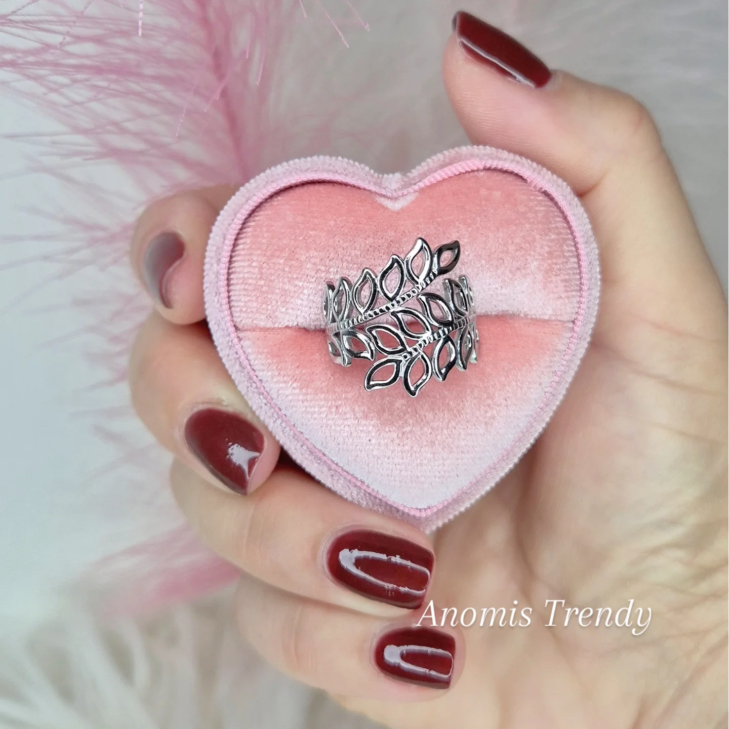 Anello doppio giro foglioline aperte 100% acciaio mis. regolabile