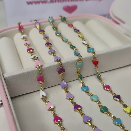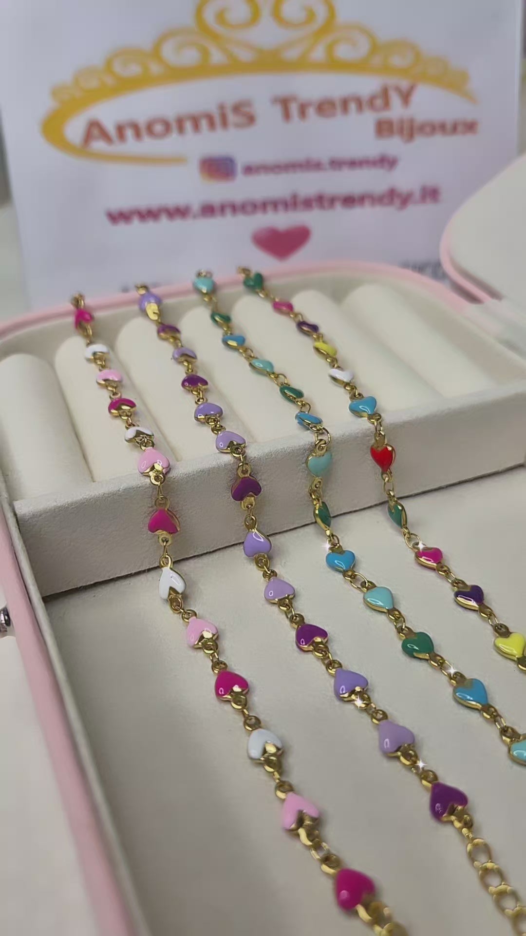 Bracciale Cuoricini smaltati colorati in acciaio gold misura regolabile