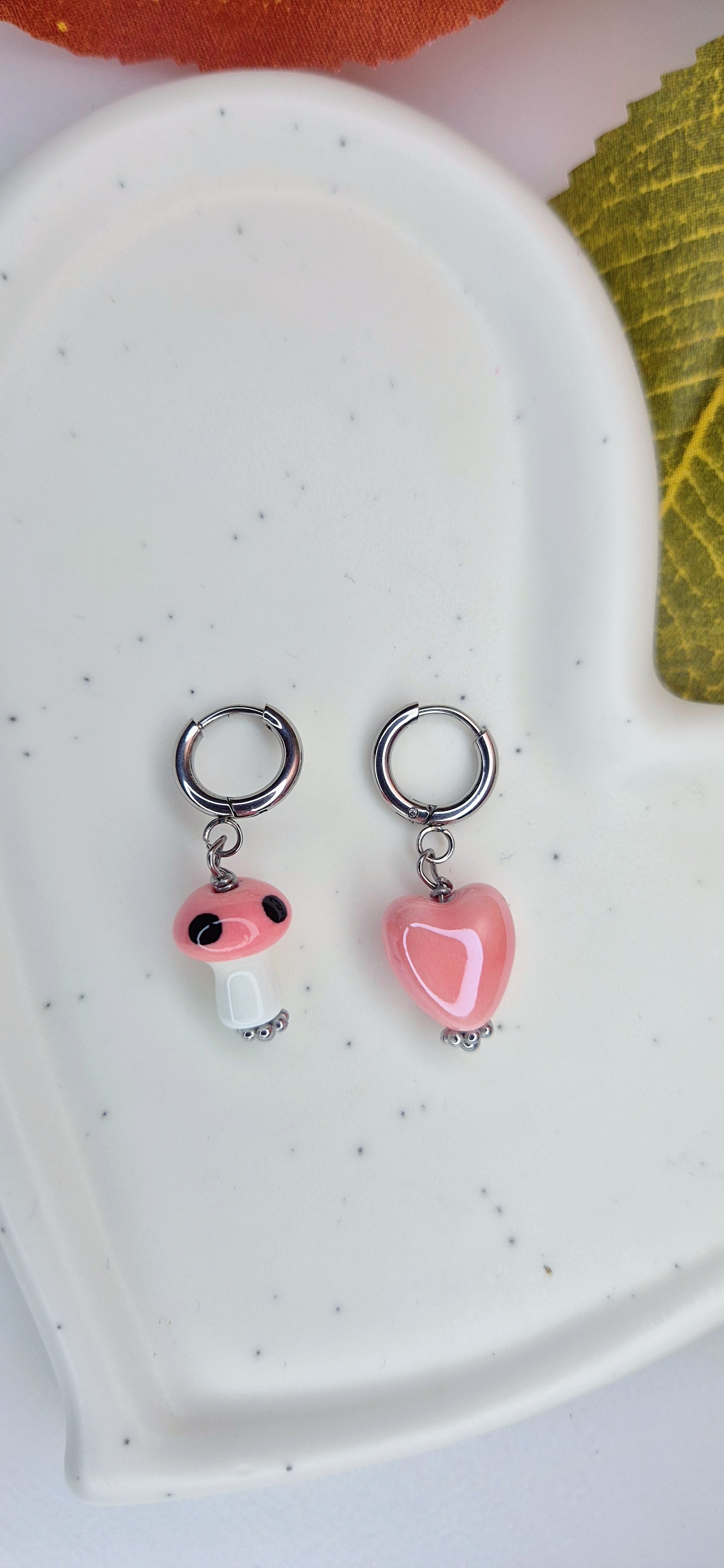 Bracciale e orecchini Cuori & Funghetti 🍄 100% acciaio anallergico silver