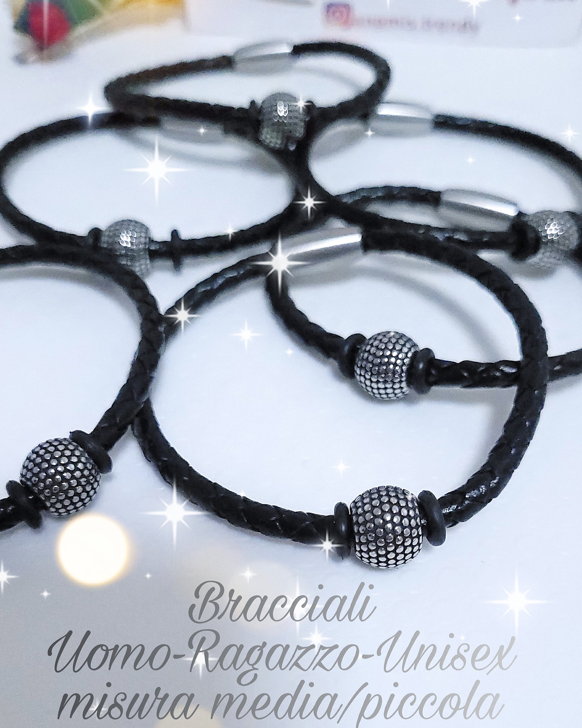 Bracciale uomo/unisex in similpelle nera intrecciata (misura piccola max 17cm)