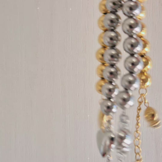 Bracciale Sonaglio Cuore o Campanella in acciaio silver o gold sfere 10mm