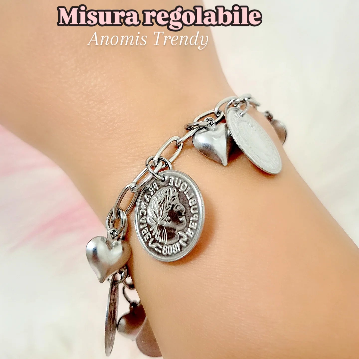 Bracciale Sonaglio Cuori & Money acciaio silver anallergico catena maglia ovale mis.regolabile