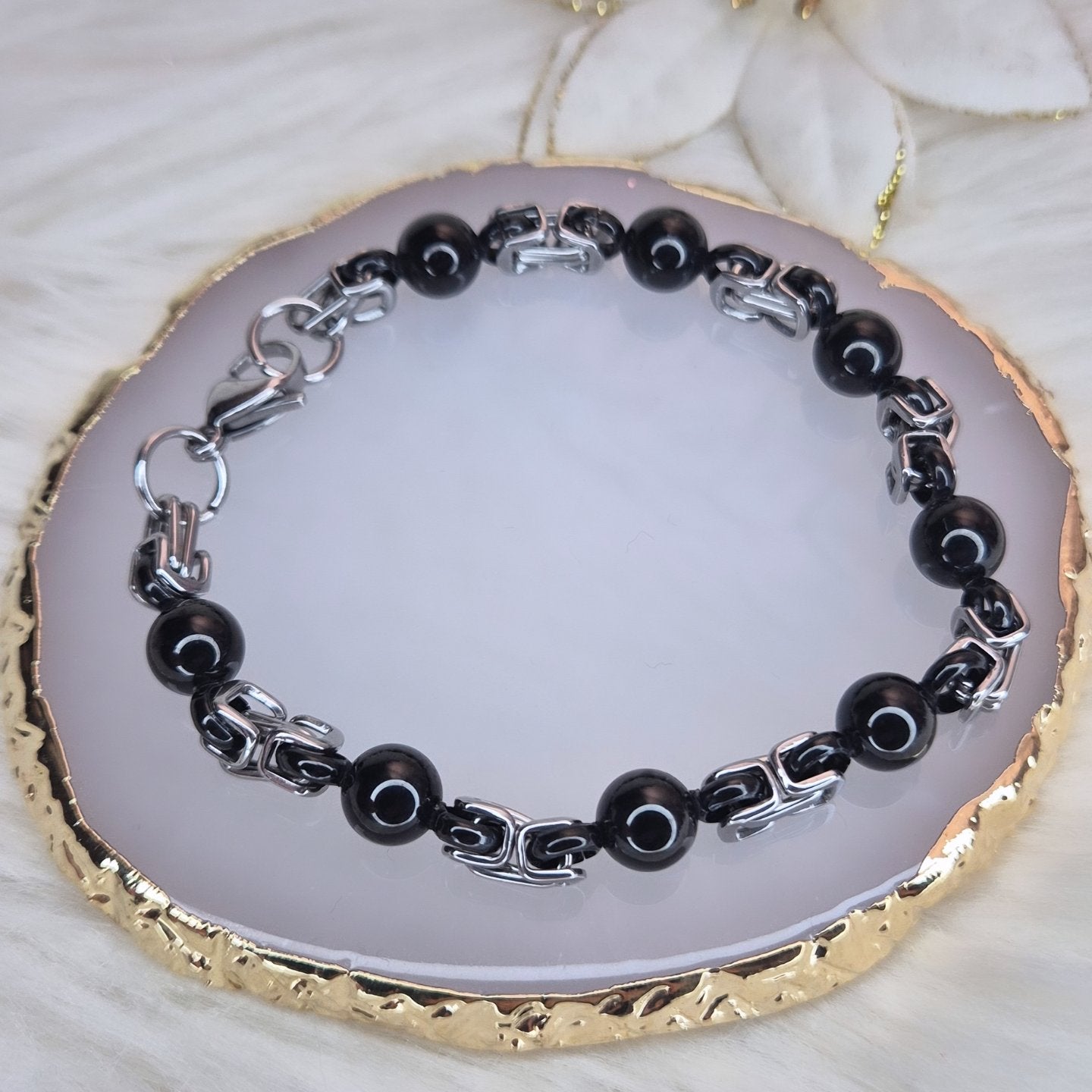 Bracciale Uomo catena acciaio mix silver con sfere nere mis. regolabile