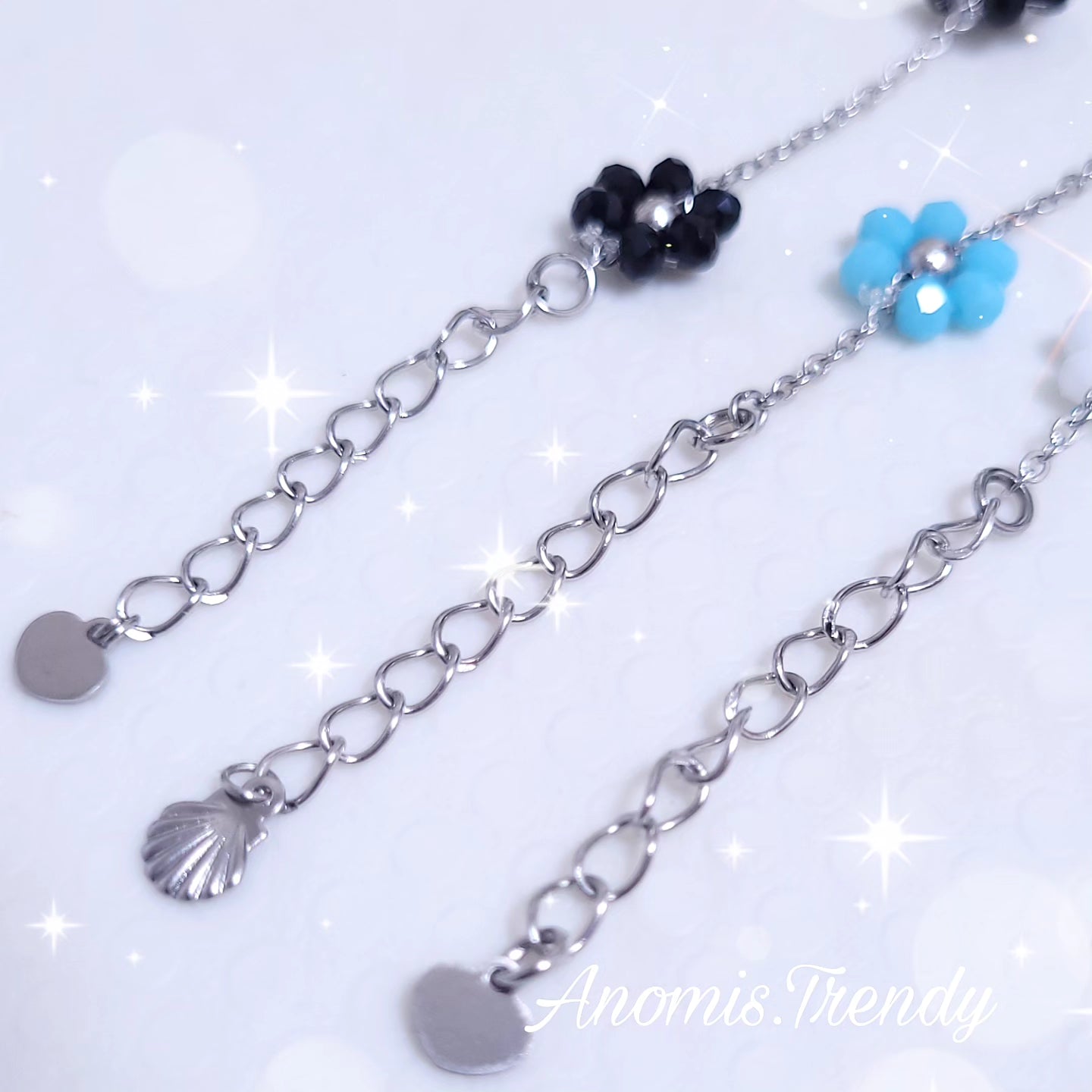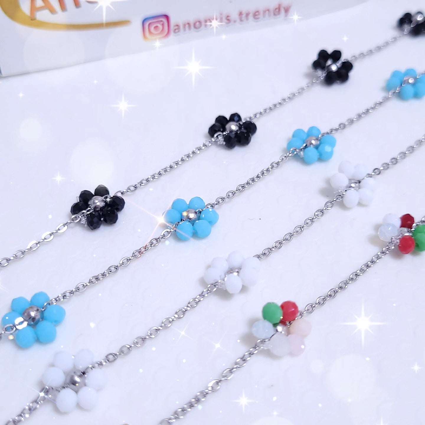 Cavigliera in acciaio con margherite in cristalli multisfaccettati
