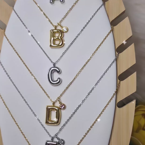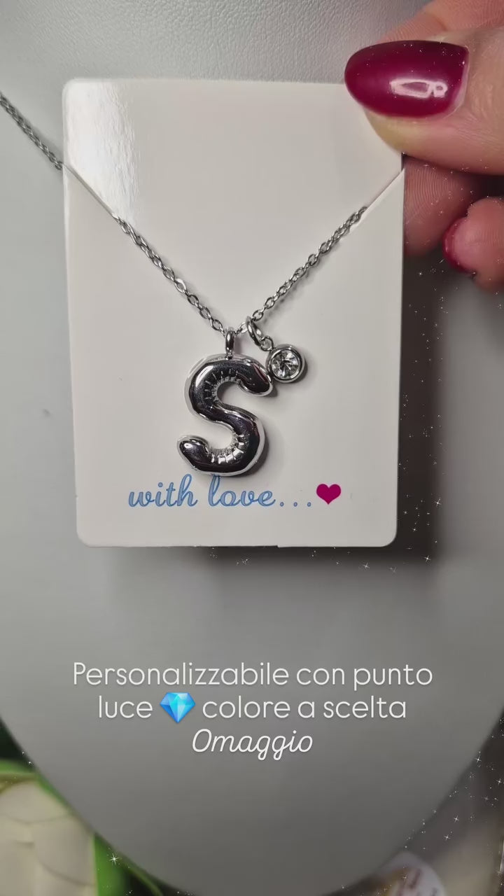Collana lettera iniziale bombata in acciaio Silver o Gold personalizzabile con punto luce omaggio (colore a scelta)