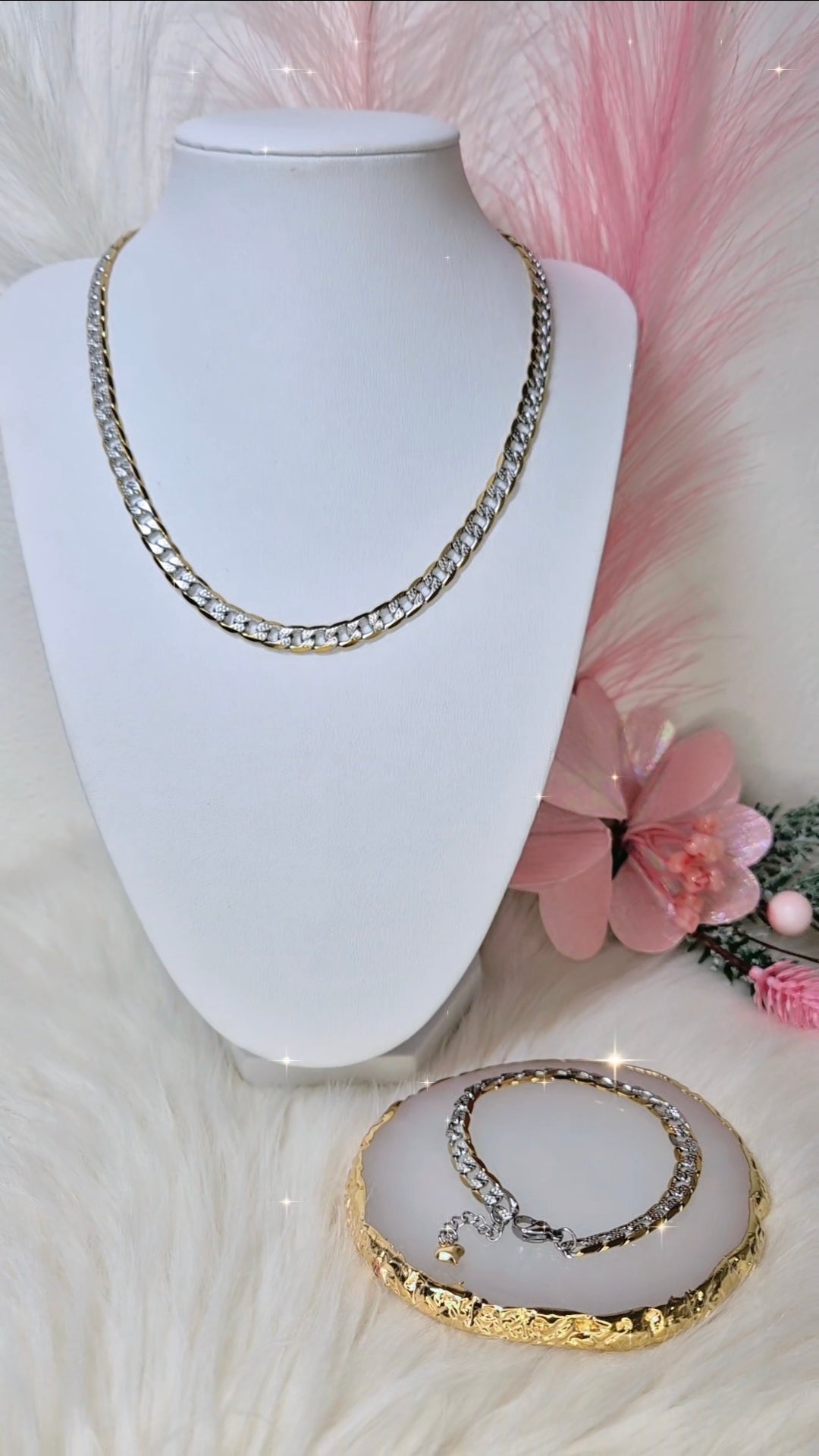 Girocollo Bracciale o parure catena martellata acciaio bicolor anallergico mis.regolab.