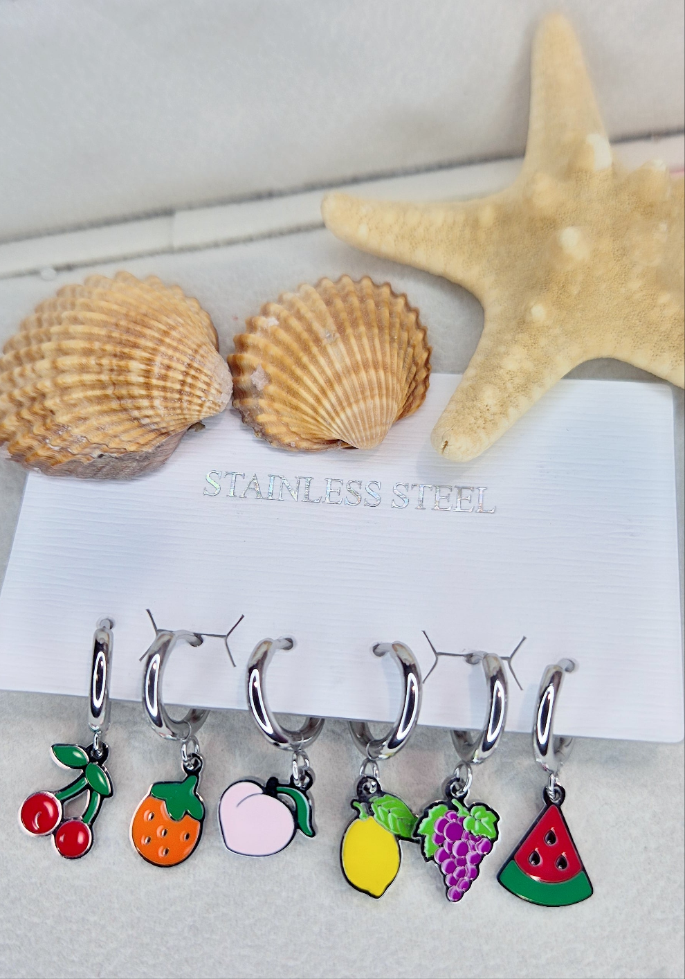 Mono Orecchini 1cm Mare & Frutta Estate '25 in acciaio anallergico (prezzo riferito a 1 singolo orecchino con ciondolo a scelta)