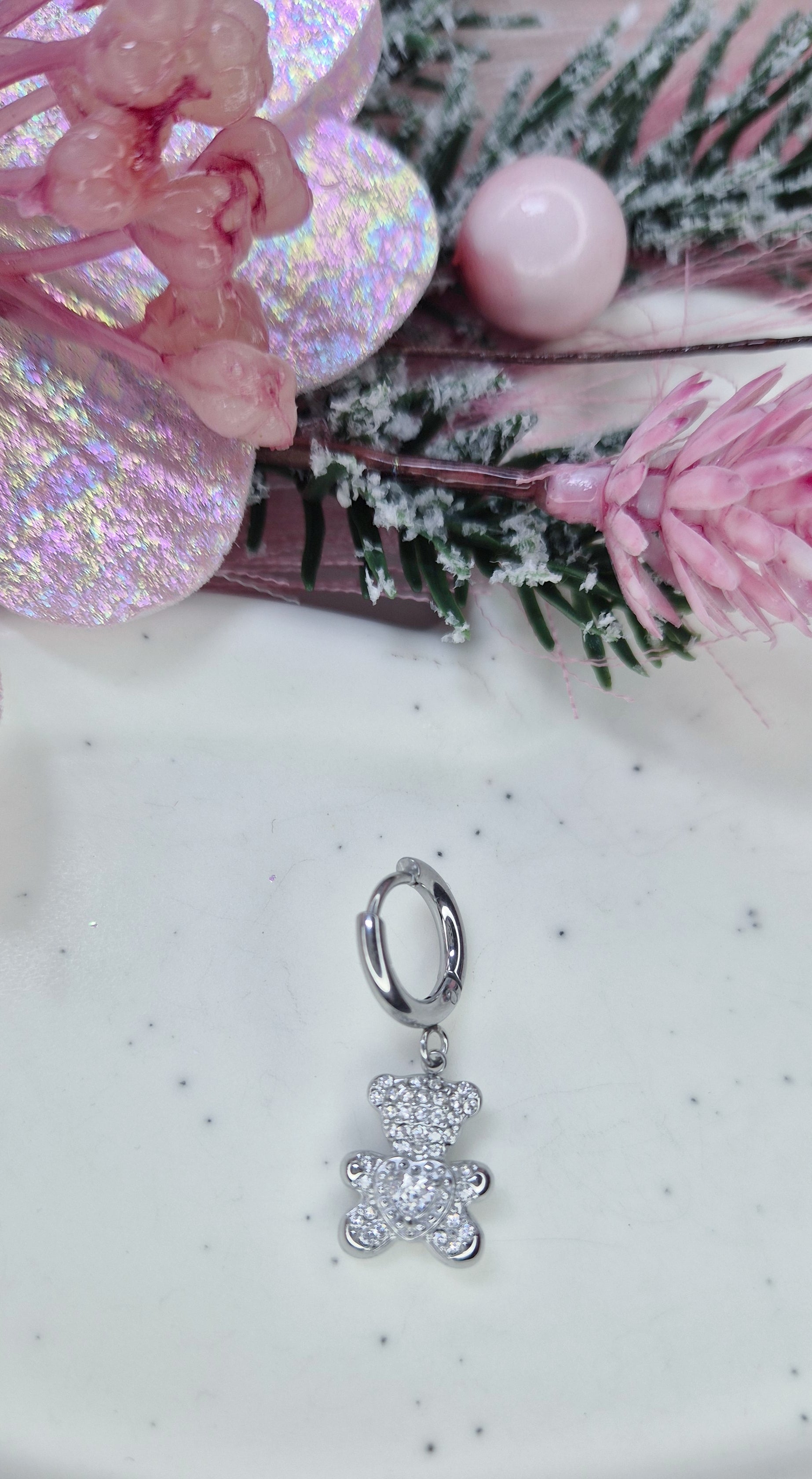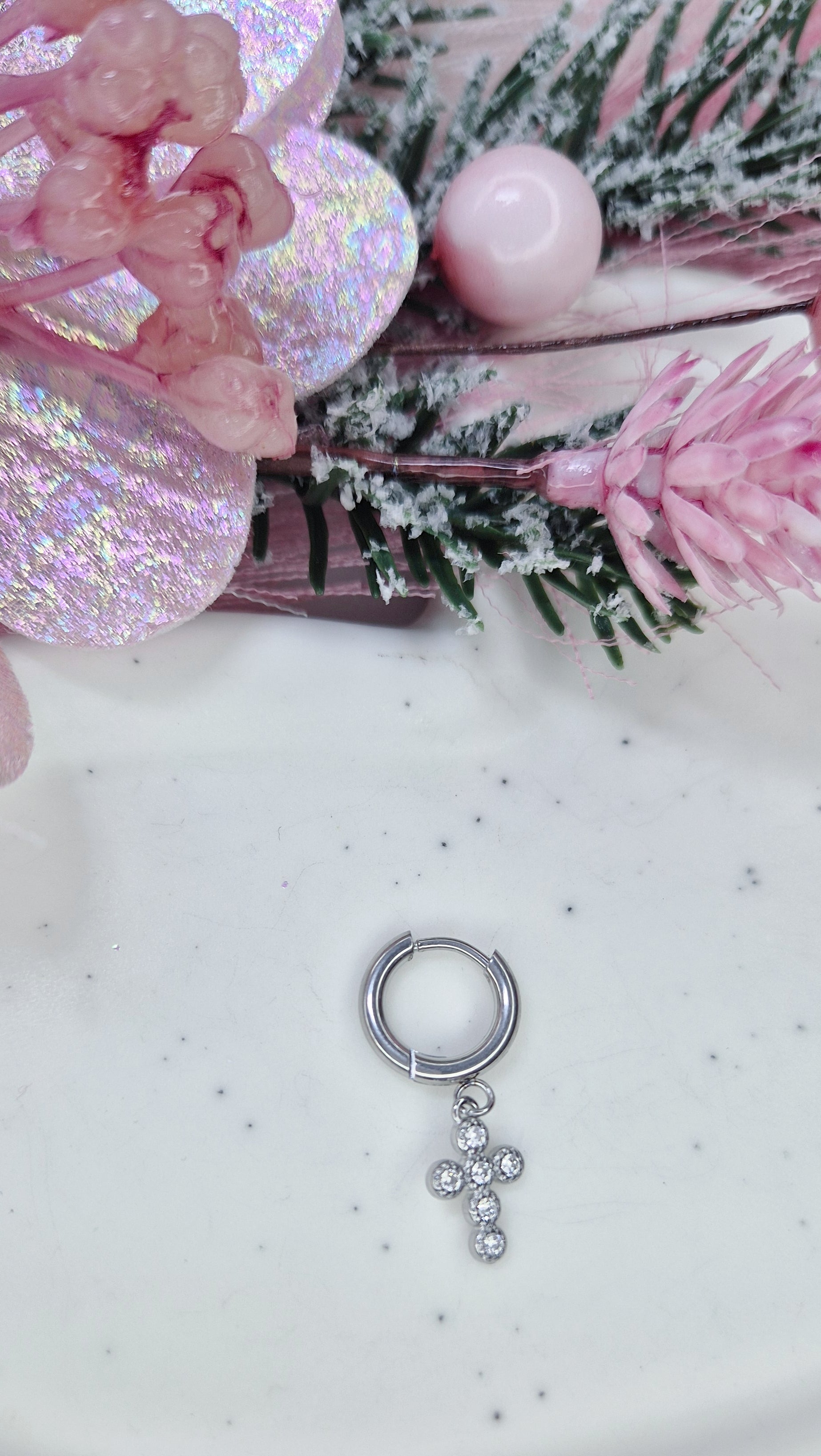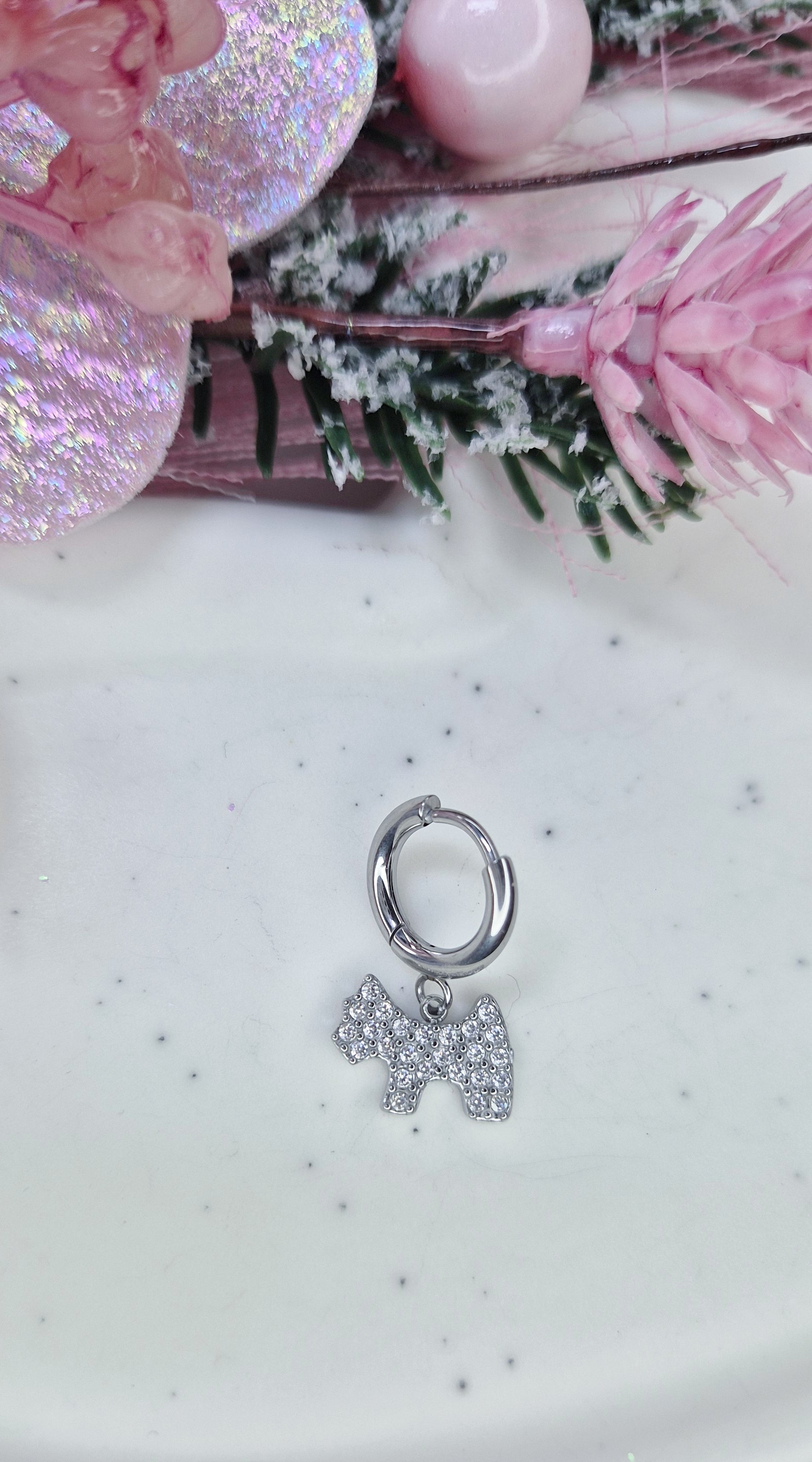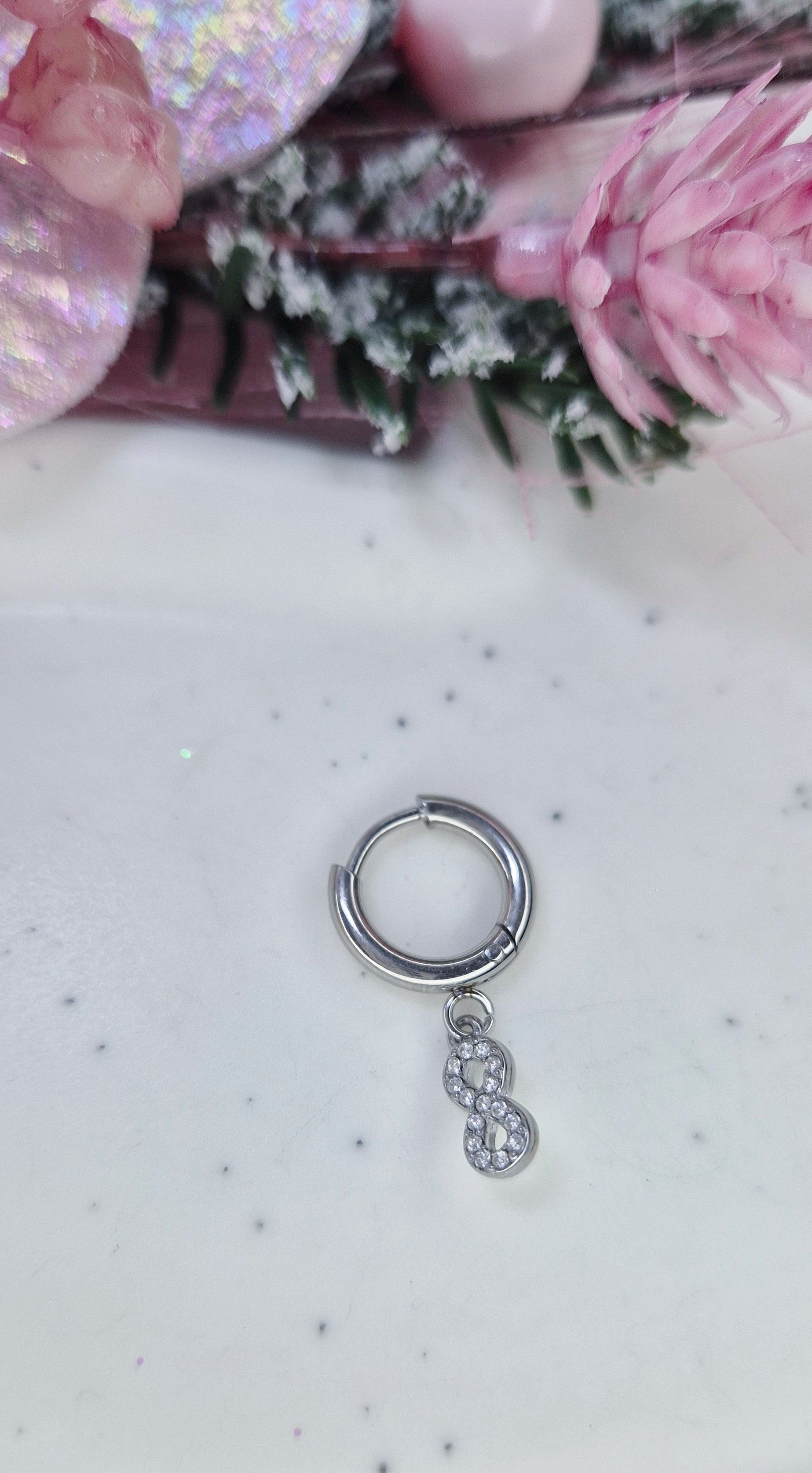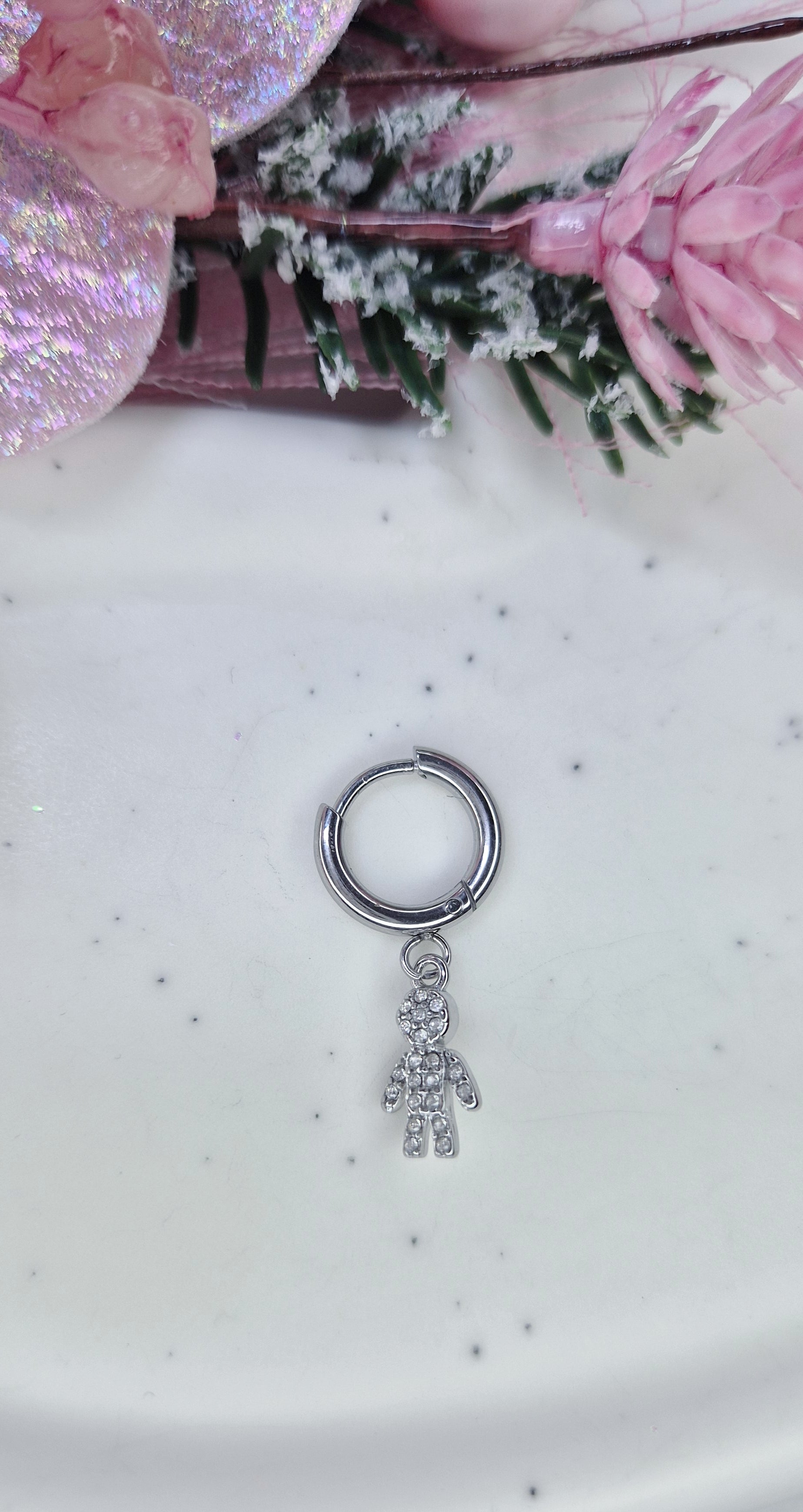 Mono Orecchino Mini Hoop 1cm in acciaio anallergico silver con pendenti strass 💎