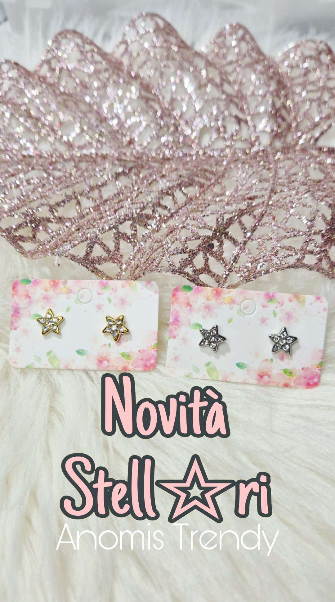 Orecchini a lobo Stelline con zirconi in Acciaio base Silver o Gold anallergici