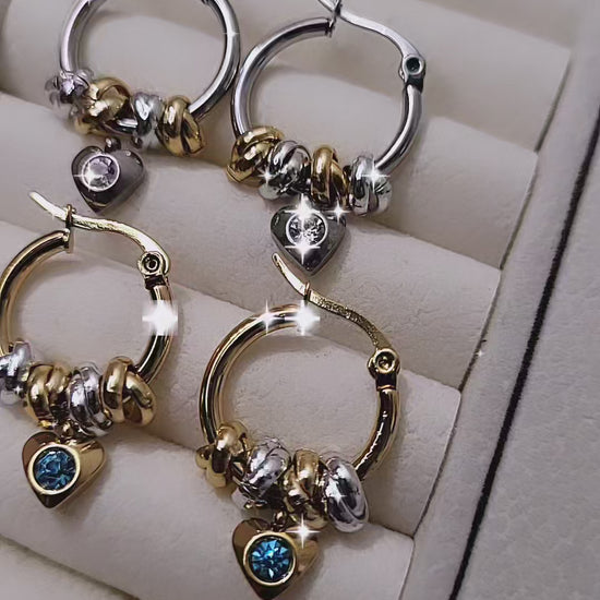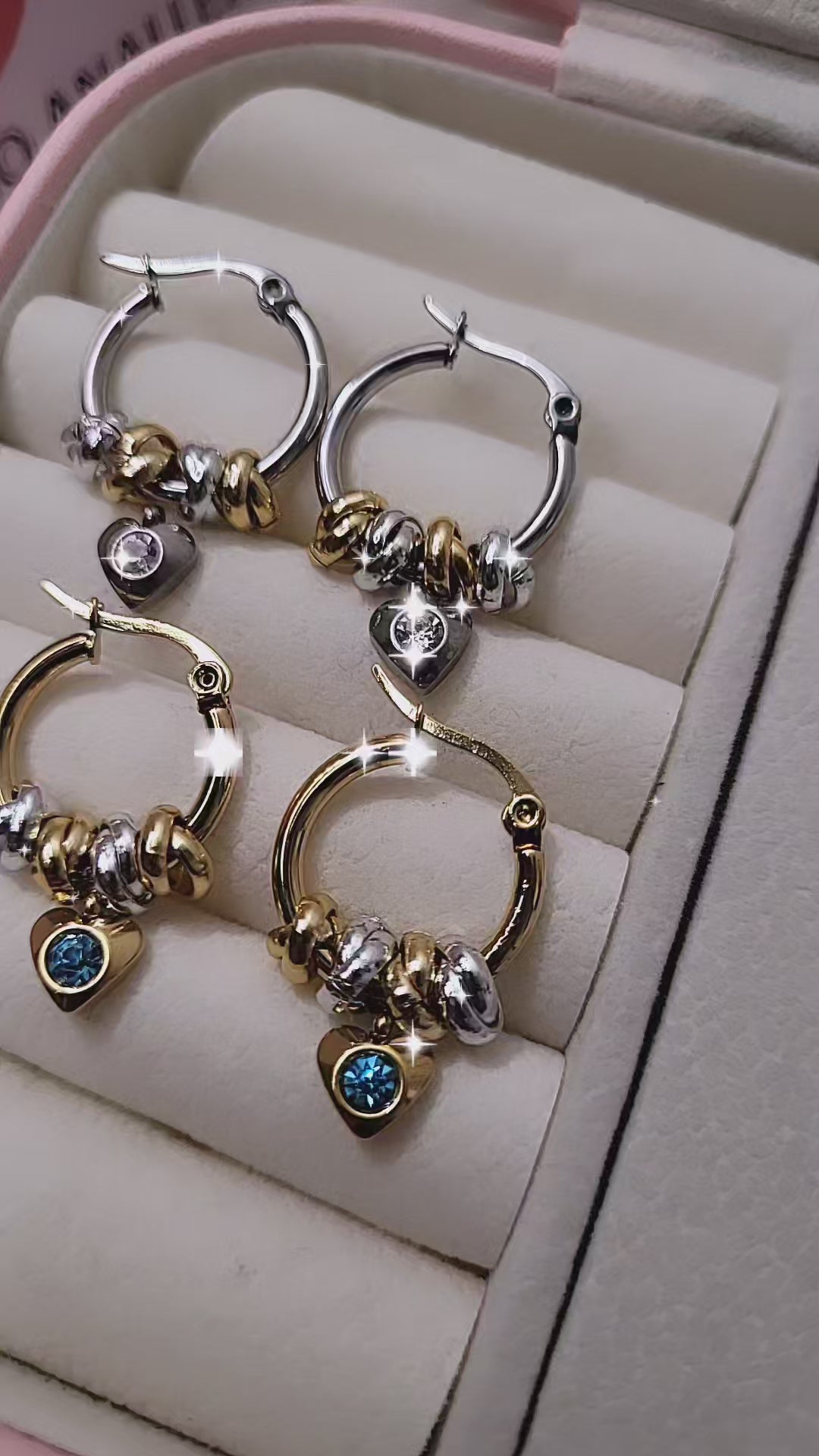 Orecchini cerchi 1.5cm nodini mix e Cuore punto luce 💎 100% acciaio anallergico