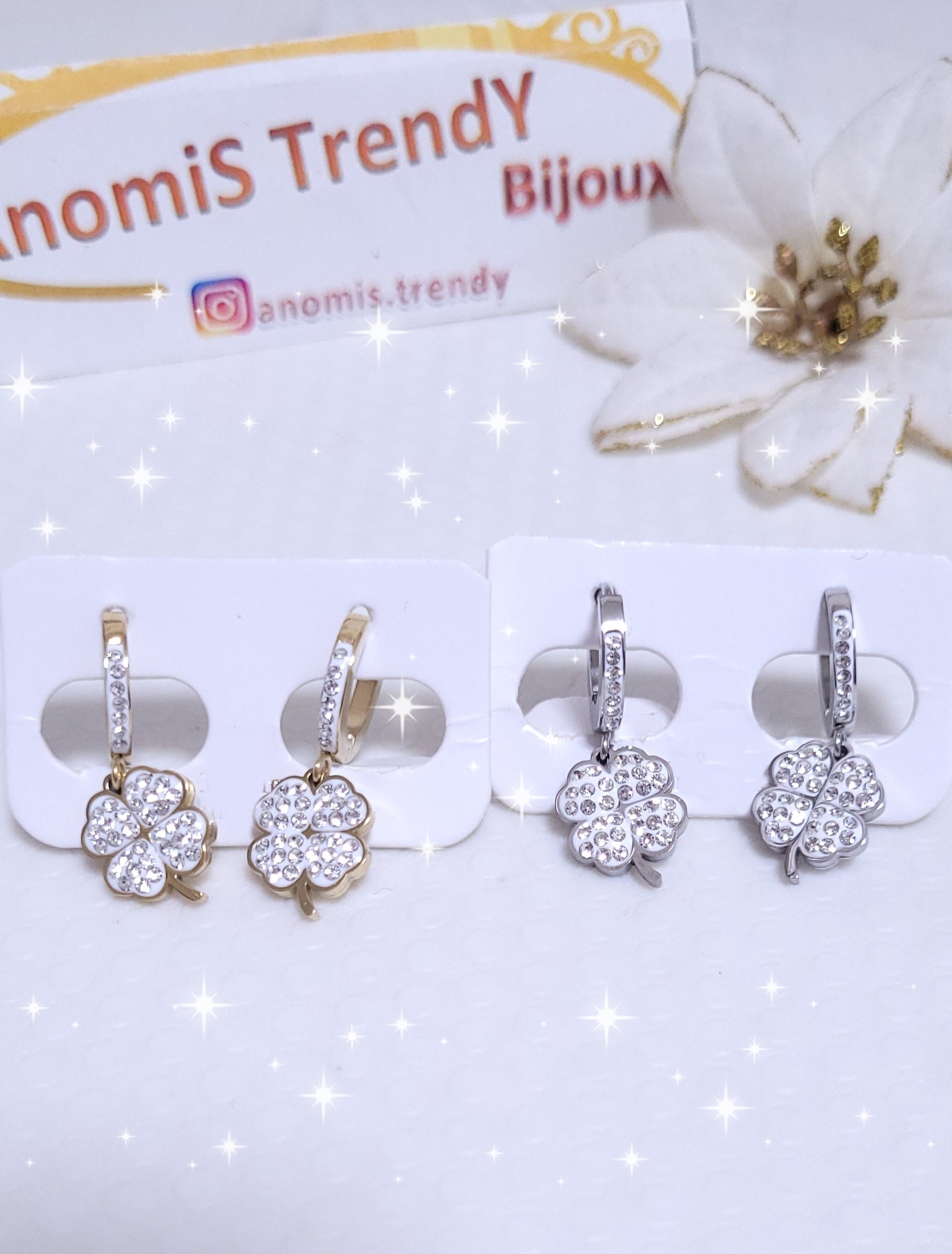 Orecchini cerchi 1cm con zirconi e Quadrifoglio portafortuna 🍀 acciaio anallergico