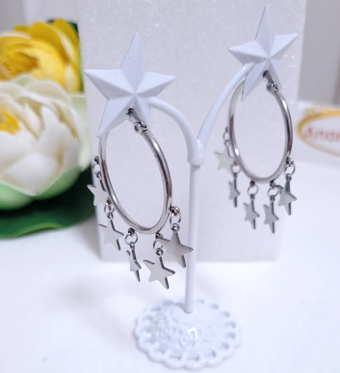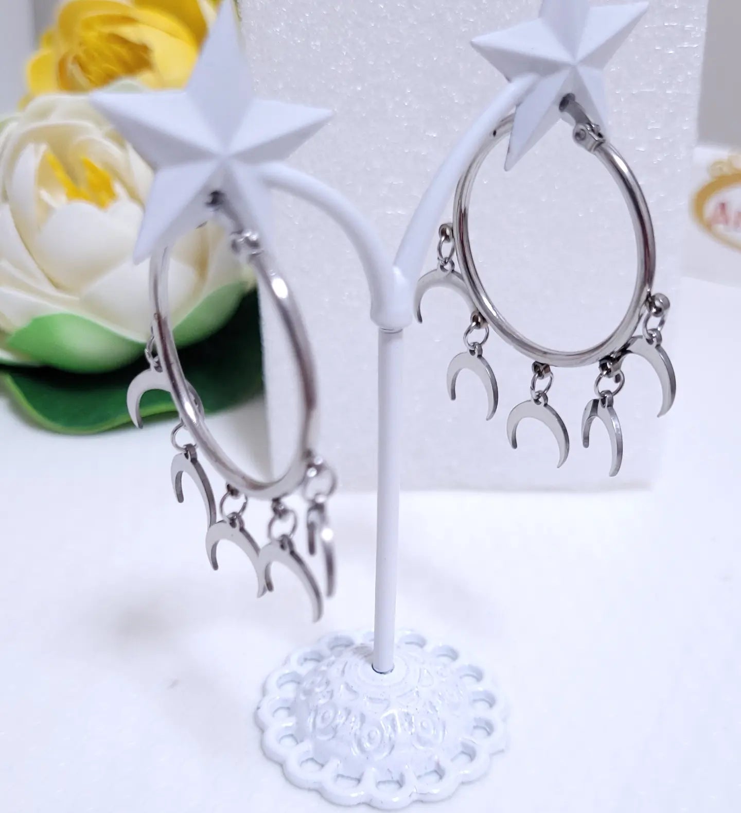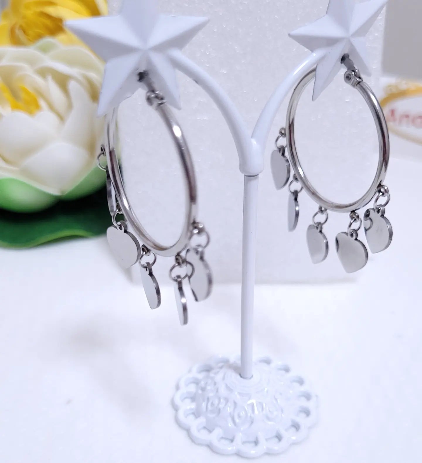 Orecchini cerchi 2.5cm in Acciaio con pendenti
