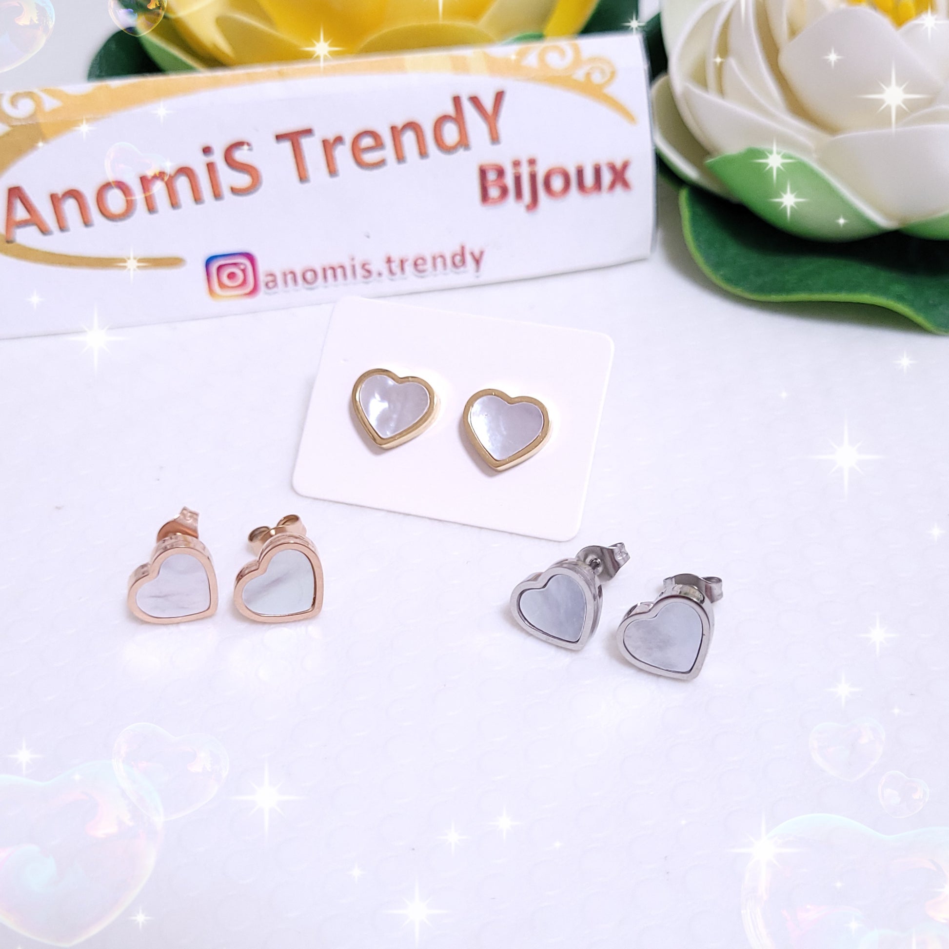 Orecchini Cuori in MadrePerla bordati in acciaio anallergico