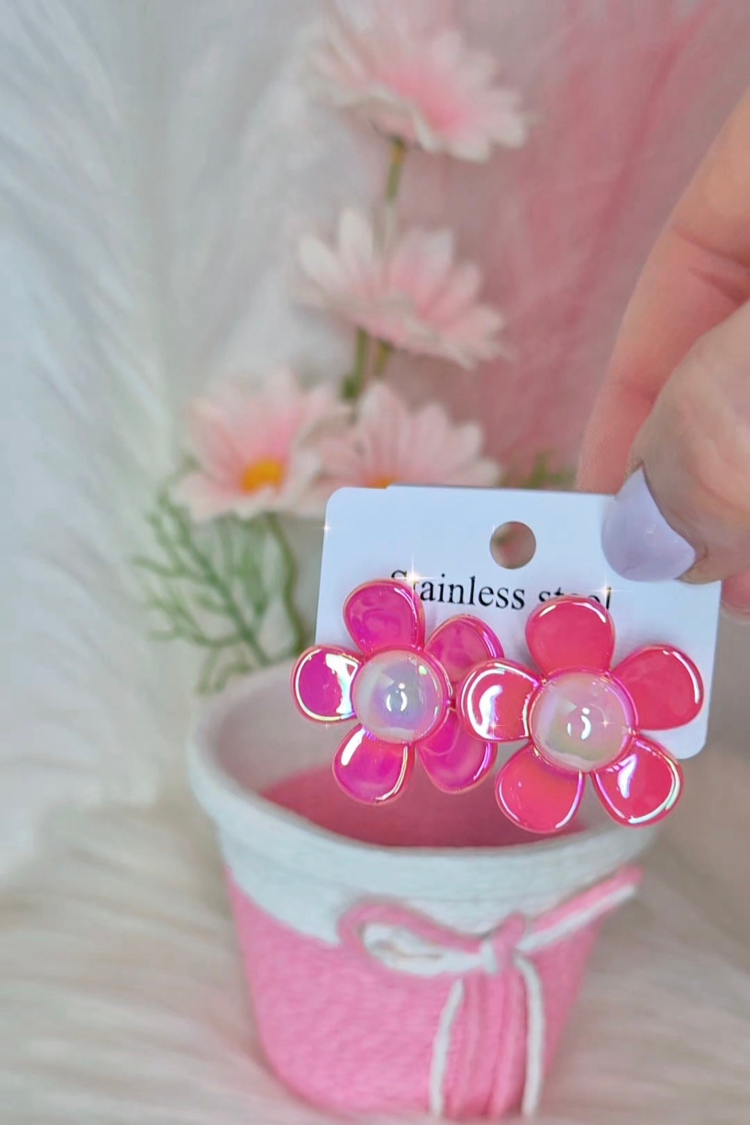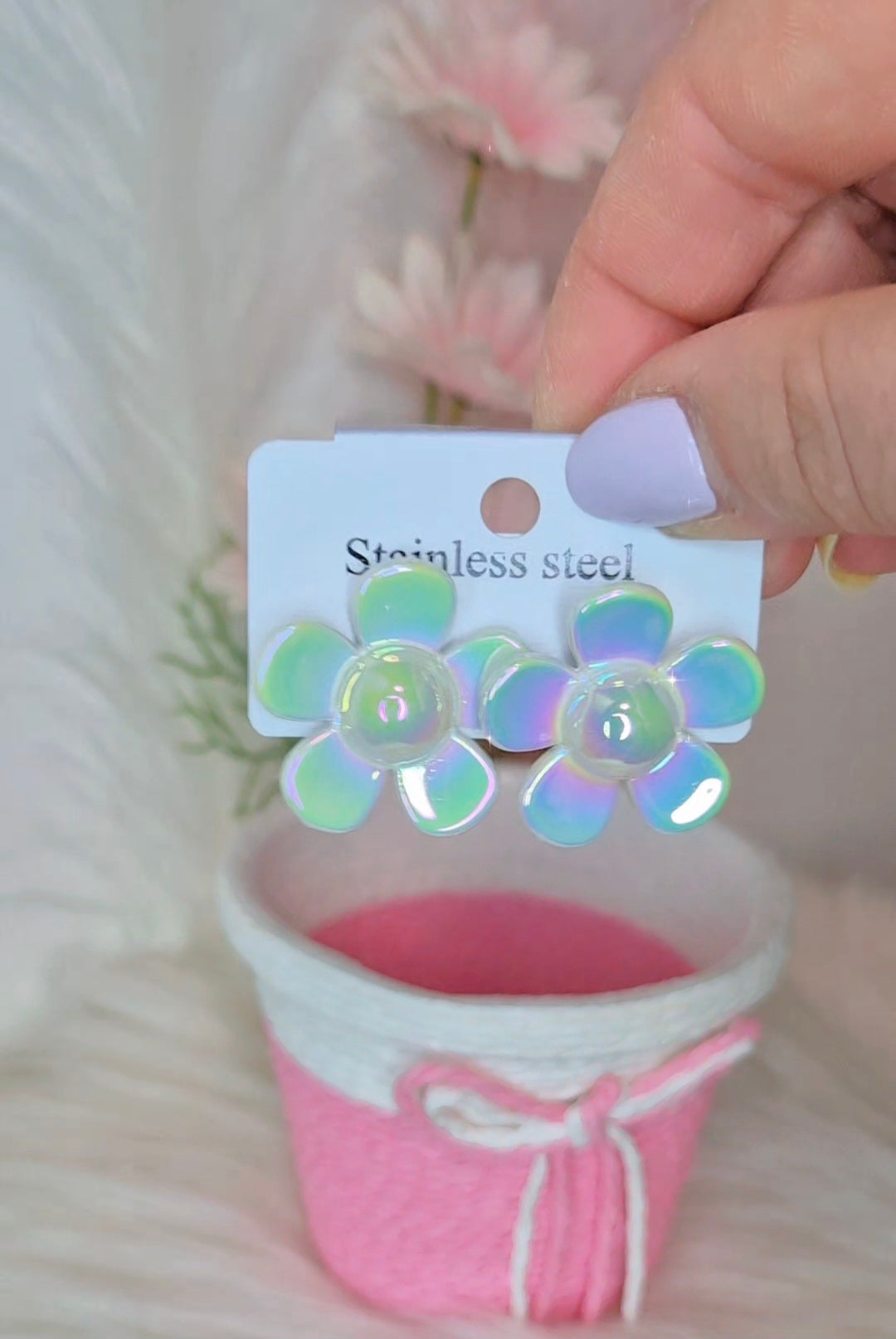 Orecchini Margherita 🌸 acciaio anallergico finish opalescente