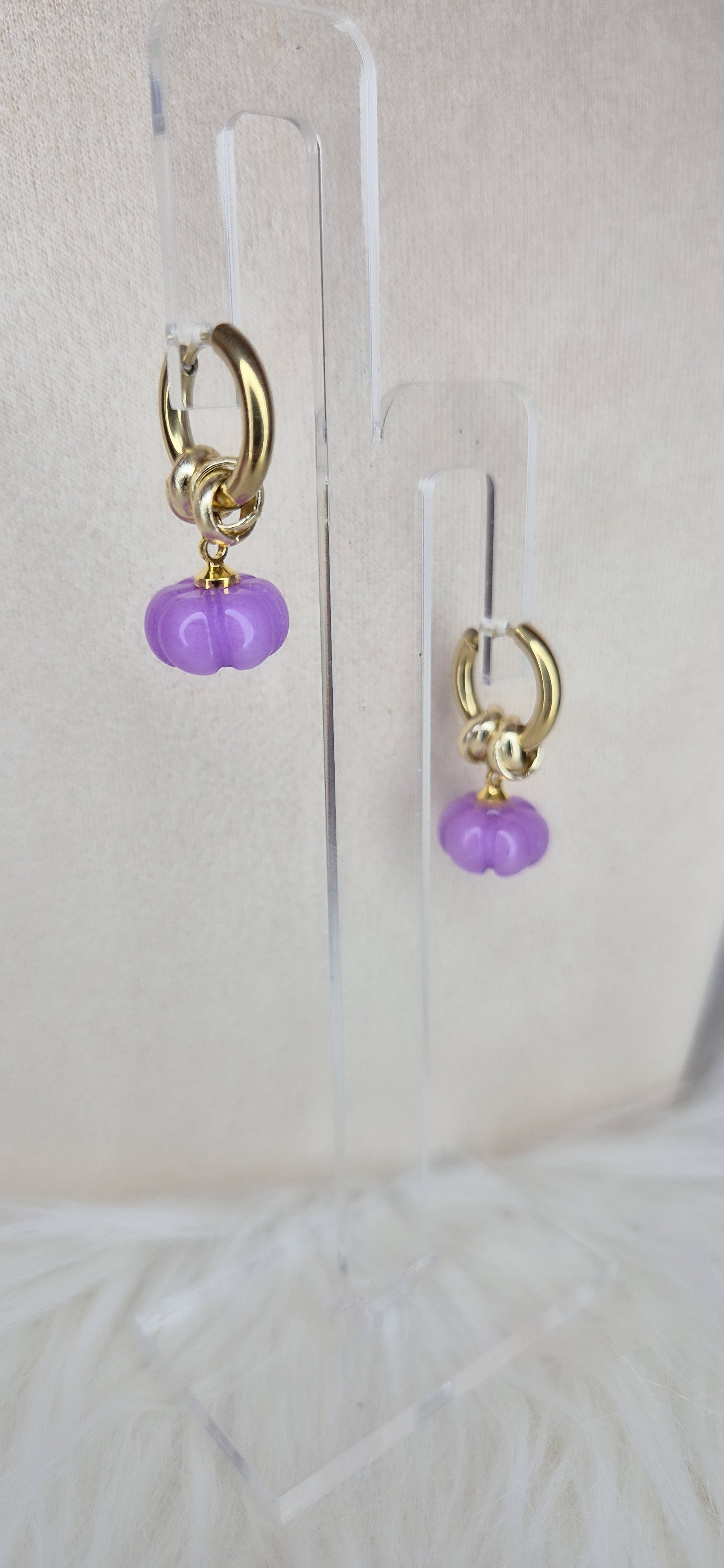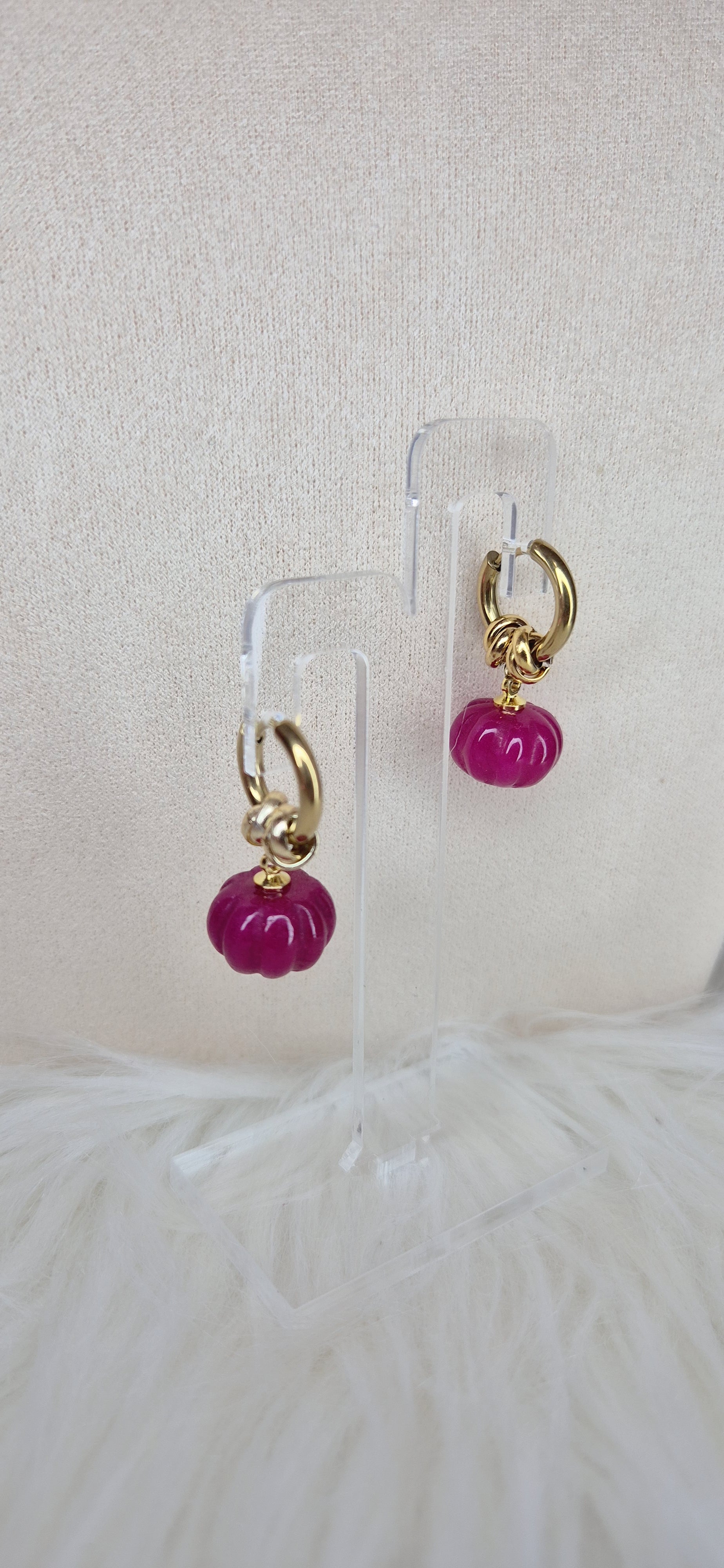 Orecchini Zucca cerchi acciaio gold 1.5cm con nodini anallergici